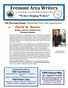 This is an historic FOURTH return appearance at Fremont Area Writers, and for good reason!